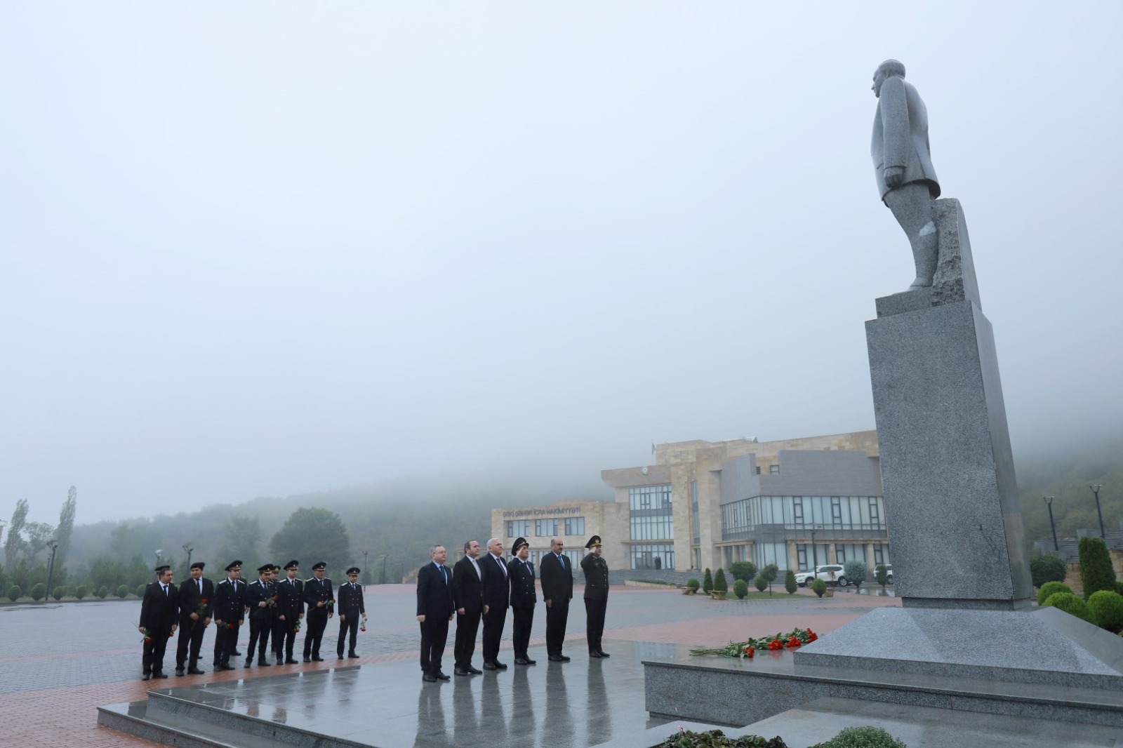 Əvvəlcə Şəki Şəhər İcra Hakimiyyətinin rəhbər şəxsləri, hüquq-mühafizə orqanlarının rəhbərləri və rayon prokurorluğunun əməkdaşları Şəki şəhərindəki Heydər Əliyev Mərkəzinin qarşısında ucaldılan Ulu Öndərin abidəsi önünə gül dəstələri qoyaraq öz ehtiramlarını bildiriblər.