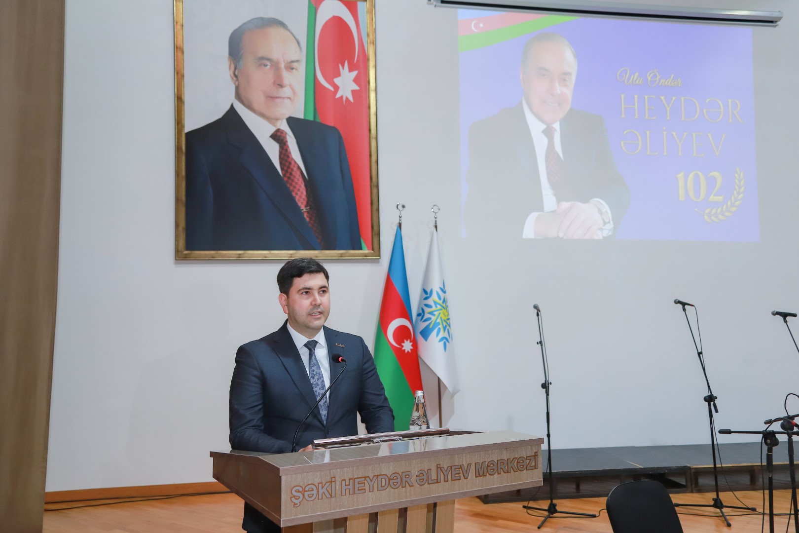 Mayın 10-da Şəki Heydər Əliyev Mərkəzində Şəki Şəhər İcra Hakimiyyəti ilə Yeni Azərbaycan Partiyası Şəki rayon Təşkilatının birgə təşkilatçılığı və Şəki-Zaqatala Regional Mədəniyyət İdarəsinin dəstəyi ilə Ulu Öndər Heydər Əliyevin anadan olmasının 102-ci ildönümünə həsr olunmuş tədbir keçirilib.